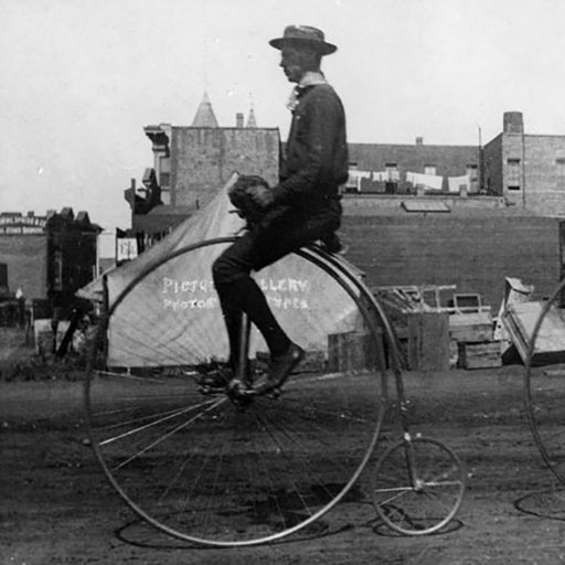それでは、このセーフティー型が登場する前の自転車はどうだったのだろうか。セーフティー型の前はチェーンを使用せず直接、駆動する車輪をペダルで回しており、その時の駆動輪は後輪ではなく、前輪だった。それがハイホイーラー(High Wheeler)またはペニーファージング(Penny Farthing)と呼ばれる自転車の形態であり、結論から言うと今回の記事で紹介する自転車、Bellcycleは、このハイホイーラーの特徴を引き継ぎながら制作された自転車だといえる。制作者のホームページはこちらである。