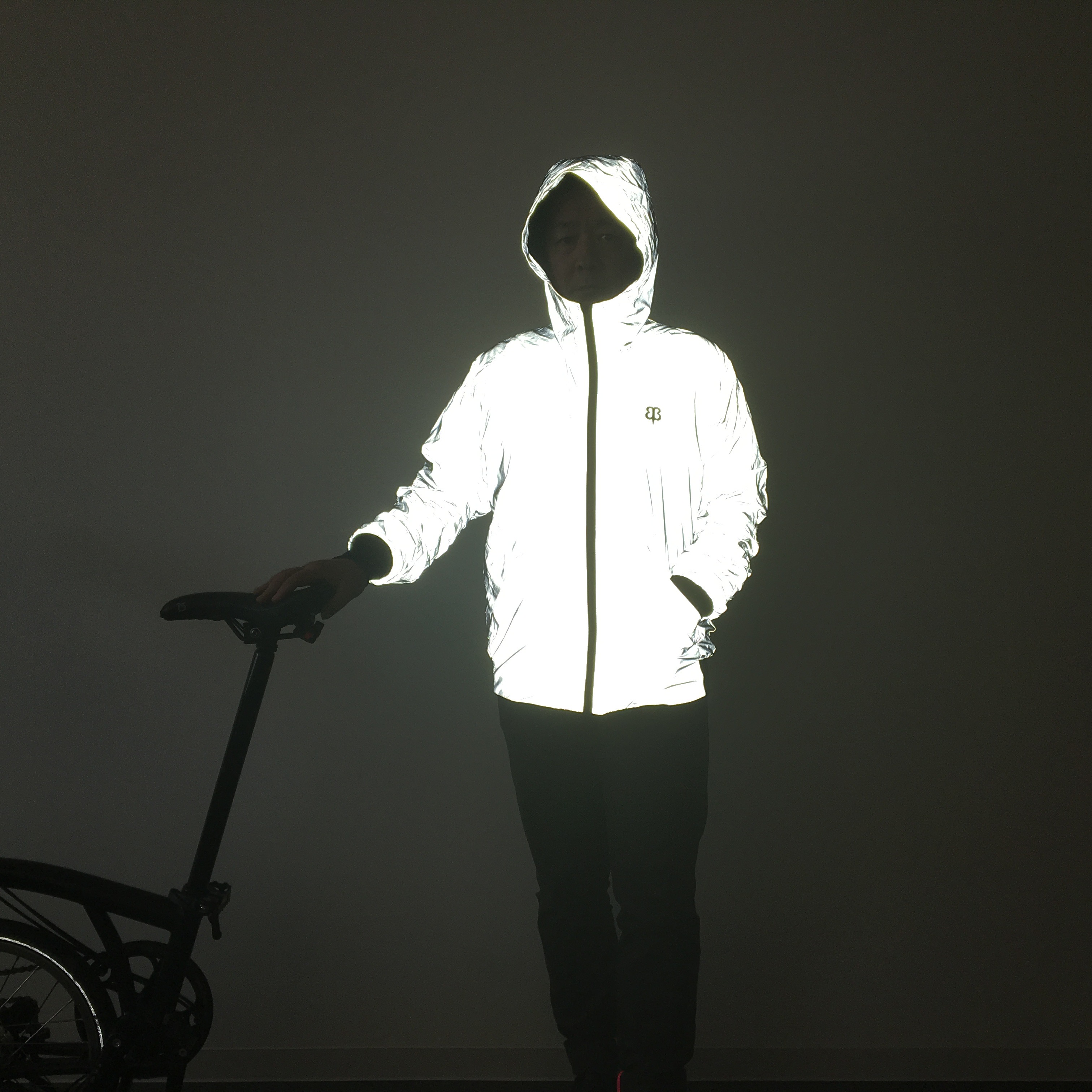 再帰性反射素材は、その高い反射率ゆえに光学迷彩服や、フラッシュによって変化する衣装に使われるなど、様々な応用が考えられる。面白かったのはBetabrandに登場したFlashback Photobomber Hoodieで、パパラッチに写真を撮られても顔が判別できないという無理矢理感のある提案。しかし、実際に昼間のiPhoneのフラッシュでも効果があった。厚手でやや重いが、サイクリングにも活躍しそうだ。
