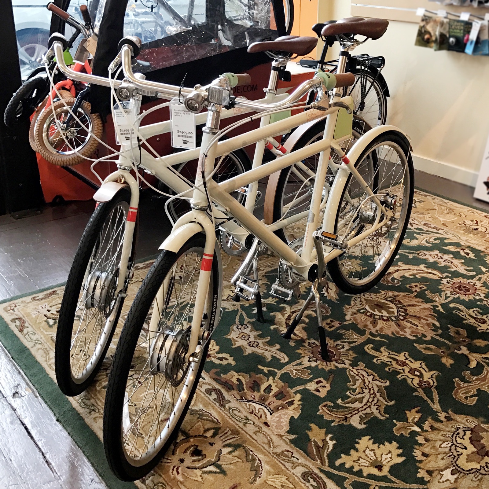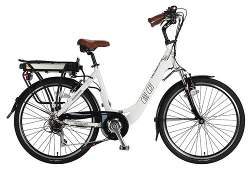 EG Bikes社のAthens 250もママチャリ型で、太いフレームとハンドルが上部に飛び出した外見は、ニワトリを連想させる。この自転車はインホイール・モーター型で、後輪の中心部(ハブ)が駆動する。これに対してRaleigh社の2台はクランクの付け根(BB、ボトム・ブラケット)にモーターが仕組まれている。価格はRaleighの半分程度だが、性能は半分ではない。バッテリーの容量も航続距離も少し劣る程度だ。