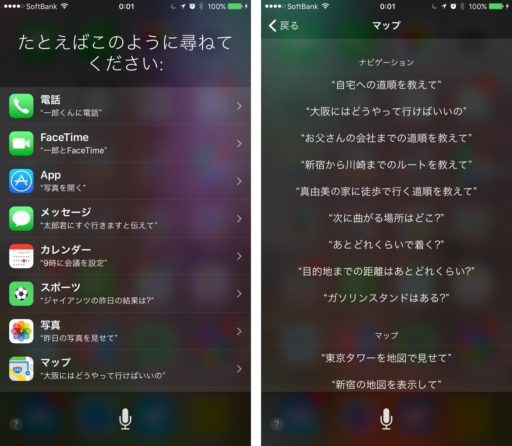 Siriで何ができるかはSiriのサイトに例示されているが、Siriに尋ねるのがスジだ。「Hey Siri、君は何ができるの?」と話しかけてみよう。メッセージやメールの読み上げや送信、目的地へのルート検索、アラームのセット、天気予報の表示など、かなり多くのことができる。ただ、Siriが調べた結果は画面上でタッチする必要があったり、カメラのシャッターのようにアプリ内の操作ができないのが難点。