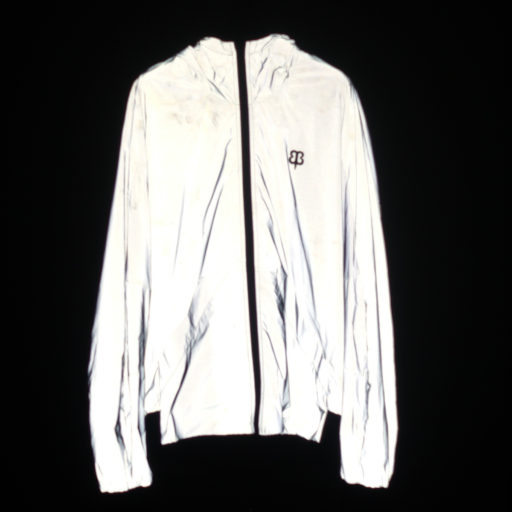 この設定はProvizのReflect360+が飽和し過ぎない程度の露出として用いた。同じ撮影条件でBetabrandのFlashback Photobomber Hoodieは同程度の明るさで写ったので、反射性能も同じくらいだろう。Reflect360+は表面に細かいドット模様があり、Photobomberは滑らかな生地だ。このドット模様の役割は明らかではないが、反射性が劣るとされるReflect360(+ではない)にはドット模様がない。