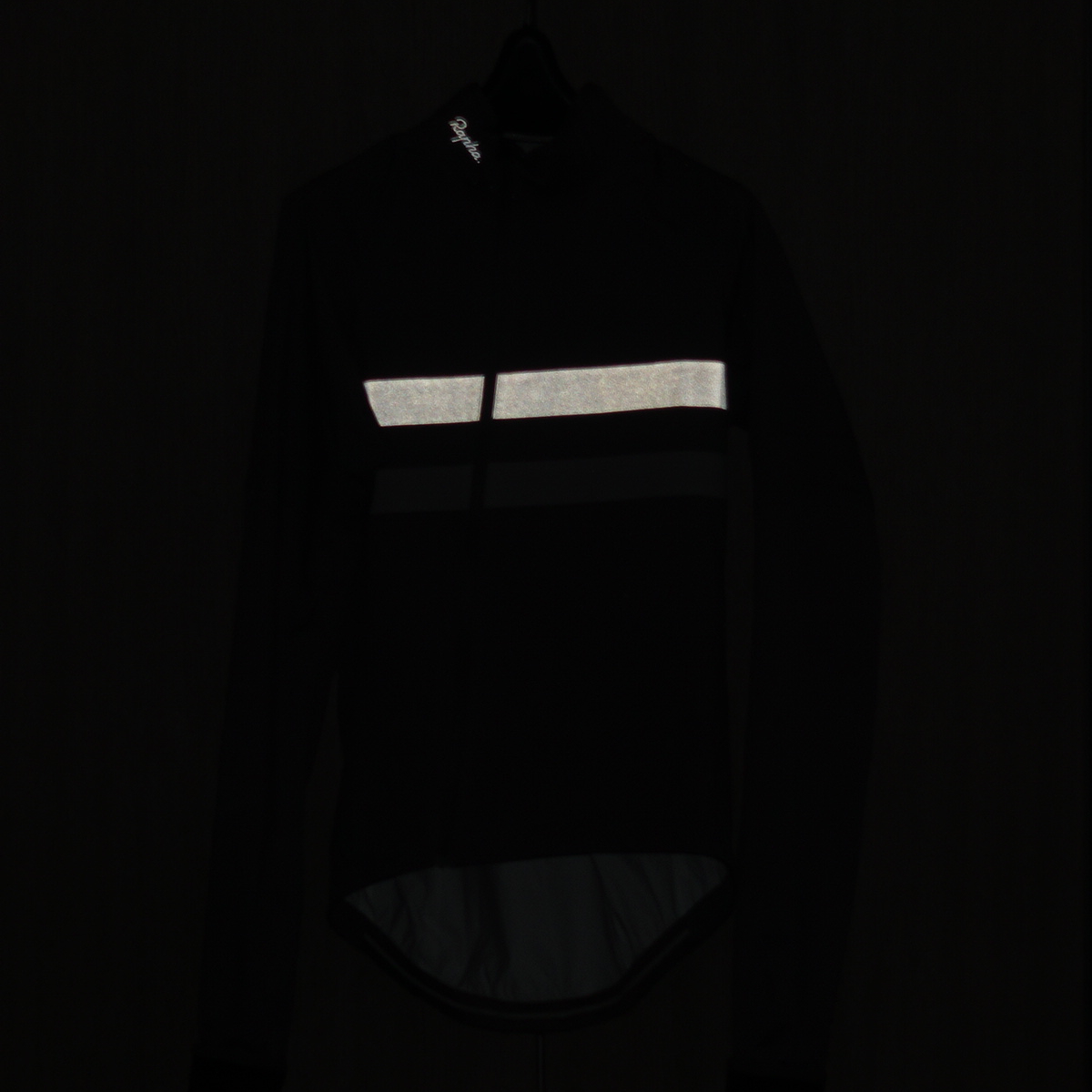 SugoiのZap Bike Jacketは、同じ条件で撮影してReflect360+と比べると、かなり薄暗く写っている。このジャケットはネオンカラーが刺激的だが、夜間のライトの反射性能としては劣ることになる。RaphaのRain Jakectも、反射性のある横ストライプが薄暗く写っているに過ぎない。だが、いずれも夜間にライトが当たれば、とても良く目立つ。Reflect360+やPhotobomberが強烈過ぎるわけだ。