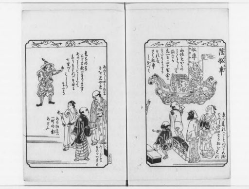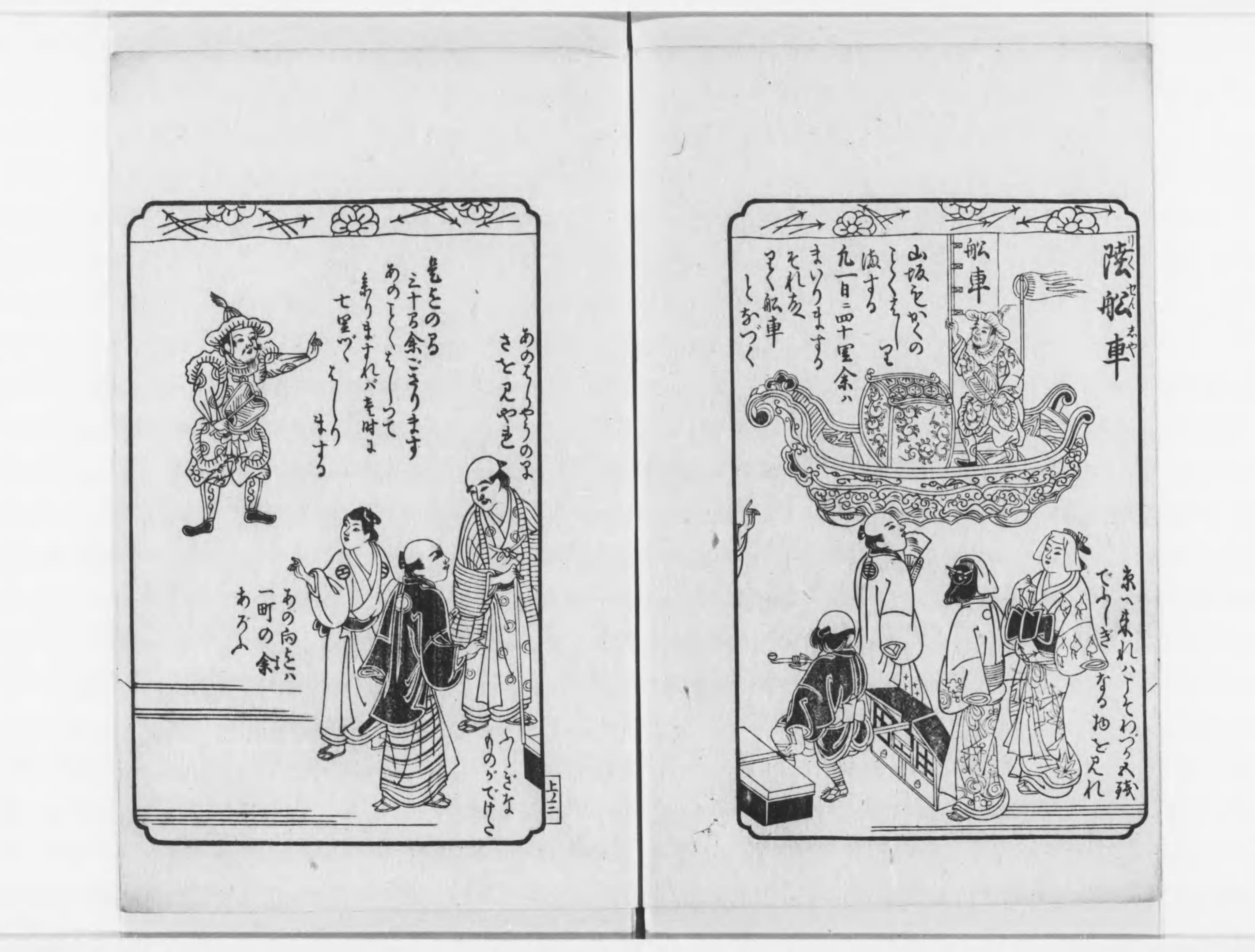 また、新製陸舟奔車之記には、先立つ1729年に製作された四輪の千里車、それを改良した三輪の陸船車の概要が記載されている。千里車は現在の埼玉県本庄市の農民、門弥の発明で、将軍吉宗にも献上された。これを改良した陸船車は1930年に京都竹本座の見世物として評判になっていた。陸船車の外観機構は、当時のカラクリ解説書「拾珎御伽璣訓蒙鑑草」にも掲載されている。