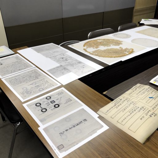 次いで図書館に移動し、会議室に案内されて古文書「新製陸舟奔車之記」の写しを閲覧する。経年劣化した実物は既にデジタル化されており、鮮明な紙焼き写真が供される。これは彦根藩藩士の平石久平次時光(ひらいし・くへいじ・ときみつ)の著で、自ら制作した新製陸舟奔車の形状や機構を記録している。今日の設計図のような精緻な図版ではないが、どのような仕組みであったかを理解するには十分だ。