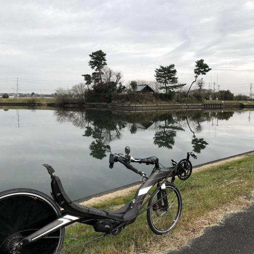 3日目もリカンベントで、この日は朝から夕方まで背割堤など川沿いの道を走る。ほとんどの道で交通量は少なく、路面も良好なので走りやすい。河口に向かって傾斜しているはずだが、気がつかないほど平坦で、下りでも上りで苦労しない。ライドは快適だったが、3日目になって飽き性が現れ、嫌気を覚え始める。なぜ毎日走っているのか?あと5日も走り続けるのか?疑問がふつふつと湧き起こる。