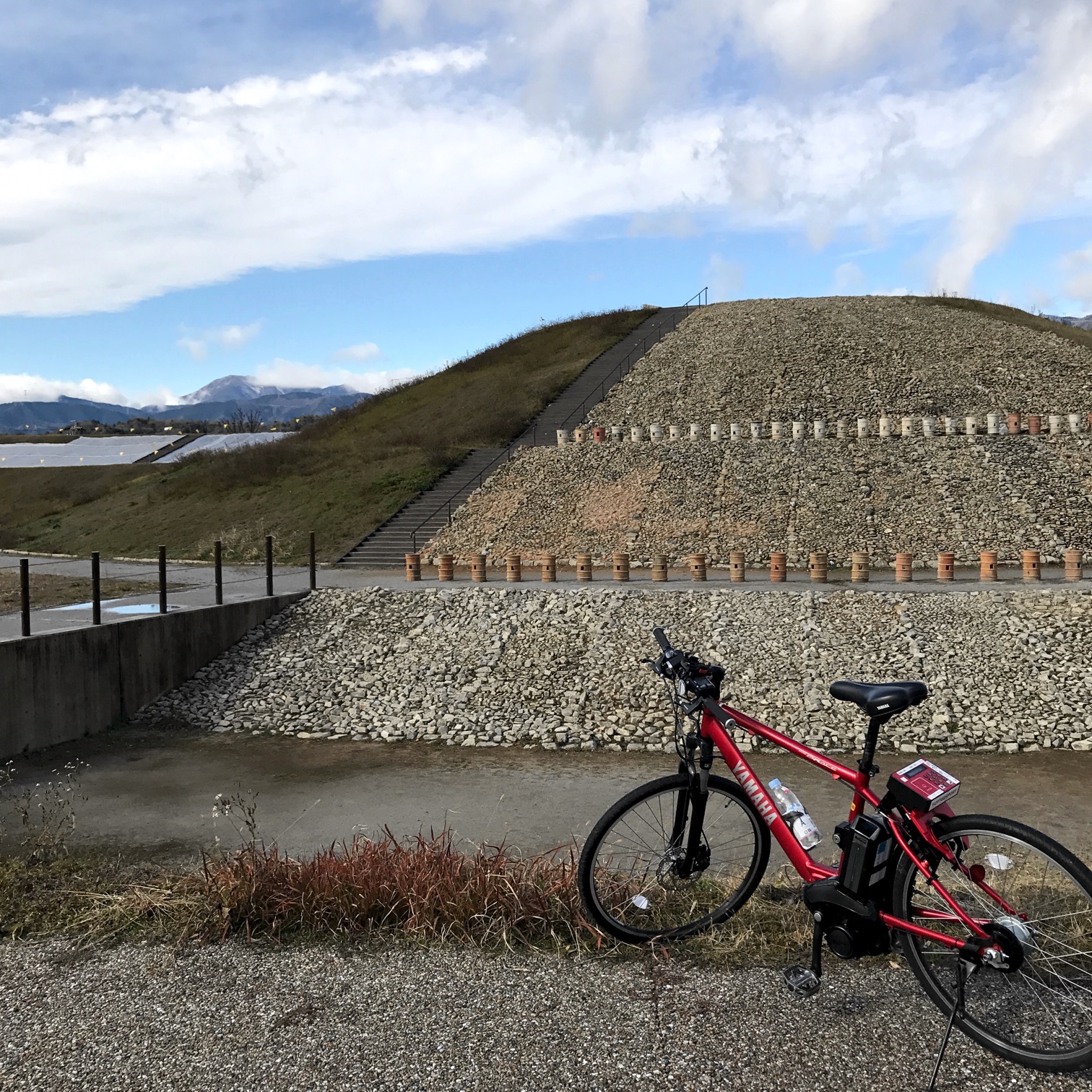 連日のライドに飽きたので、4日目は気分を変えて電動アシスト自転車に挑戦。まずBrompton S6Lで10kmほど離れたレンタル場所へ行き、YAMAHAのスポーツ型を借りる。これで楽をして距離を稼ぐつもりが、大きな誤算であった。アシスト率から分かるように、20km/hにもなればアシストは弱く、単に重い自転車になるからだ。Bromptonに戻ると素晴らしく軽快に走れたのが皮肉であった。