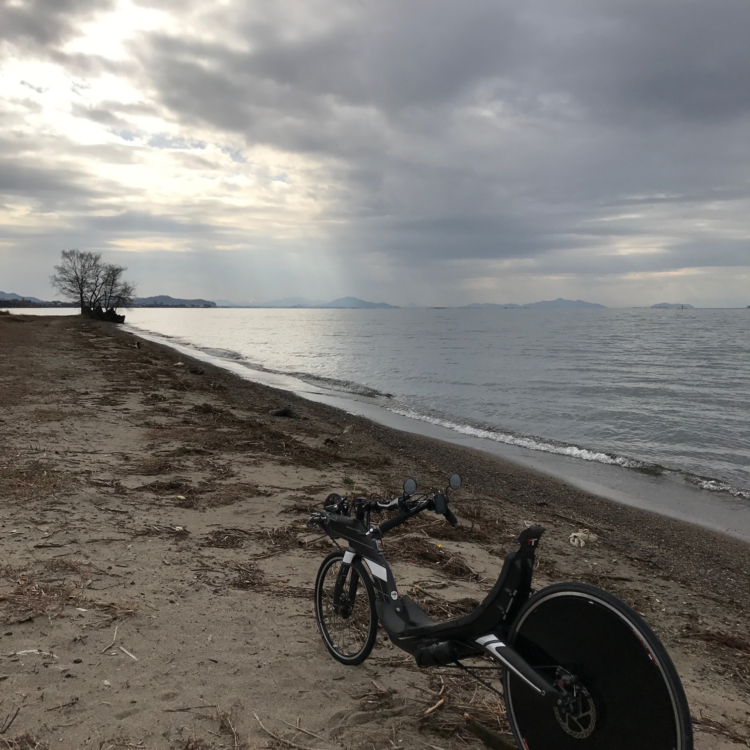 6日目のリカンベントに乗り、今度は西へ向かい、関ヶ原を越えて琵琶湖湖畔までを往復する。関ヶ原越えなる言葉もあるほど交通の難所と思いきや、実際には緩やかな坂が大半で、標高は200mにしかならない。前日より長い距離になったが、それほど疲れない。ただ、途中でツール・ボトルのジッパーが壊れ、財布やロックが取り出せない事態に陥る。これは無理矢理こじ開けたが、予想しないトラブルだった。