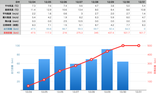 Day 8 – December 31, Tuesday – 0.0km (501.7km in total)