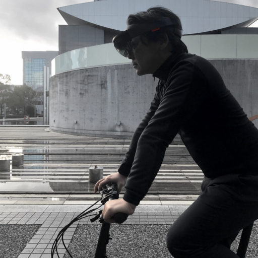 ライドでは左右確認を除けば前方に視線を集中する。この点でHoloLensでは頻繁に問題になる視野角の狭さは問われない。しかし、前傾姿勢を取ると映像が見えないどころか、額の前にある投影機構が前方視界を塞いでしまう。HoloLensを後方にずらせば、装着が安定しない。つまり、ロード・バイクでは使用困難だ。ママチャリのように上体を起こして乗る姿勢にならざるを得ない。