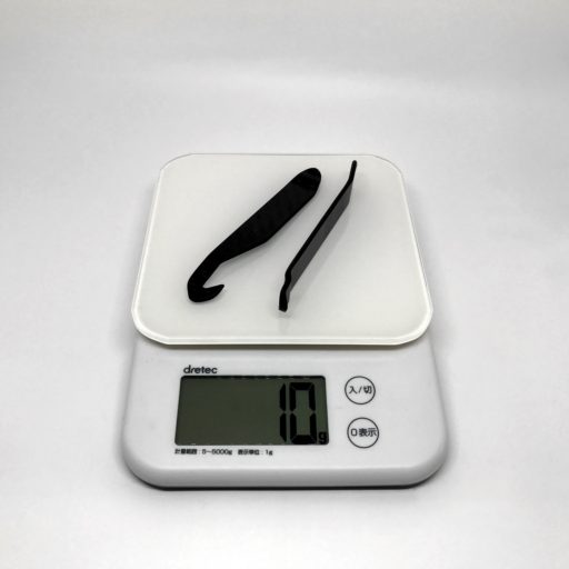 時には軽い話を少々。ボトルケージ28g、携帯ポンプ23g、タイヤレバー2本10g、合計61g。いずれもカーボン・ファイバー製。手元にあった一般的な製品の重量は、ジラルミン製ボトルケージ36g、アルミ合金製携帯ポンプ67g、樹脂製タイヤレバー2本24g、合計127g。これを半分以下と考えるか、数十グラム差ととらえるか、軽い話なので考察は省略。ちなみに、食パン6枚切りの1枚は63g。