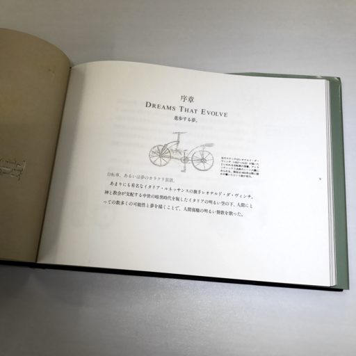 「Bicycles As Human Dreams」は、1992年に出版された化粧箱入りハードカバーの美しい写真集。約90ページに渡って、落ち着いたトーンで数々のクラシカルな自転車が紹介されている。写真と印刷のクオリティが高く、掲載された自転車は、いずれも美術品であるかのように格調が高い。いささかポエムがかった箇所があるものの、自転車の歴史を辿る解説文は簡潔で読み応えがある。