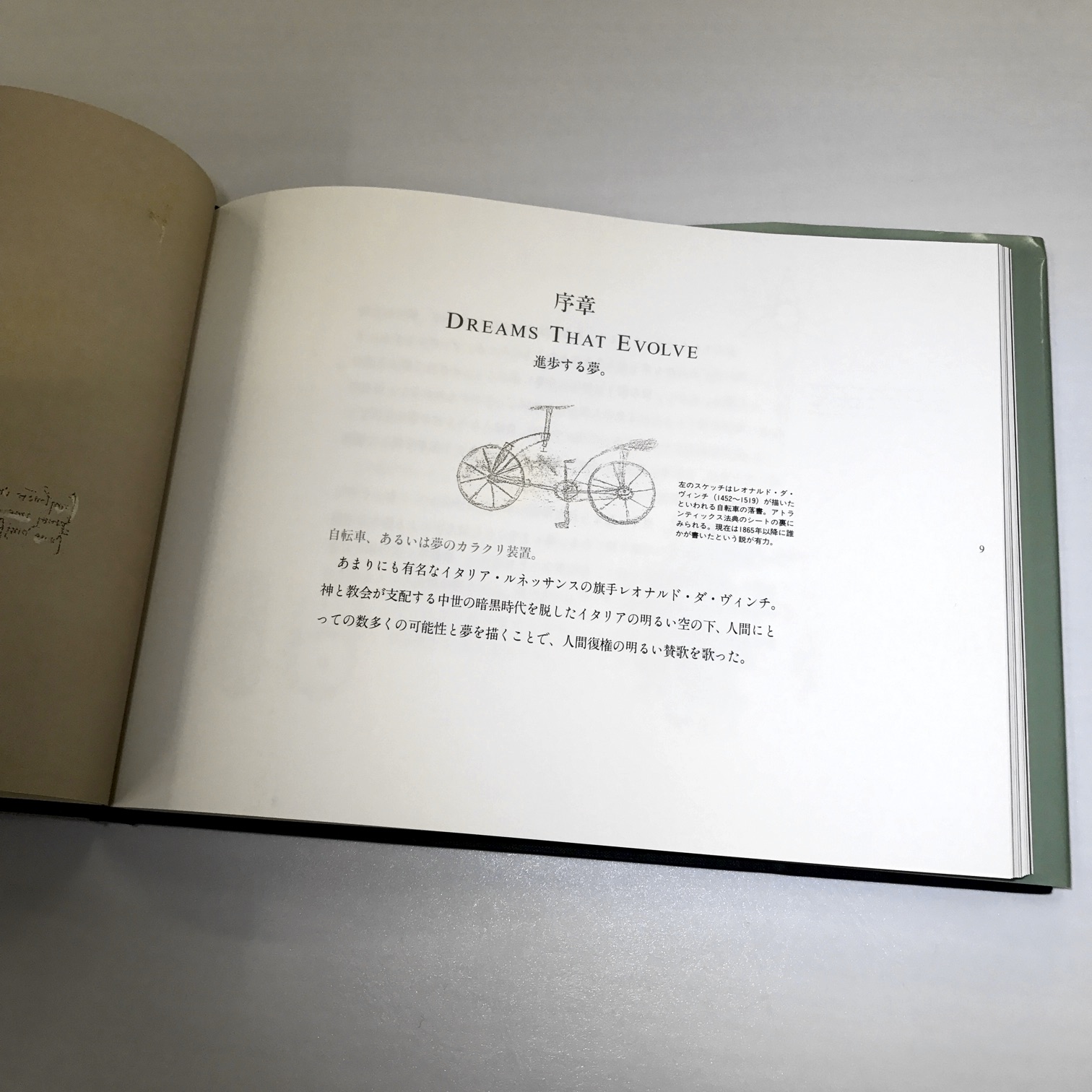 本書は、レオナルド・ダ・ヴィンチが残したとされる自転車のスケッチから始まる。宗教に支配され停滞した中世を抜け出し、溢れんばかりに芸術と科学の花が咲き誇ったルネサンスを代表する万能の天才。その彼が、世界で初めて自転車を着想したのは、自由の象徴である自転車として格好のストーリーだ。ただし、そのスケッチは余りにも稚拙で、後世の落書きとするのが今日の定説だ。