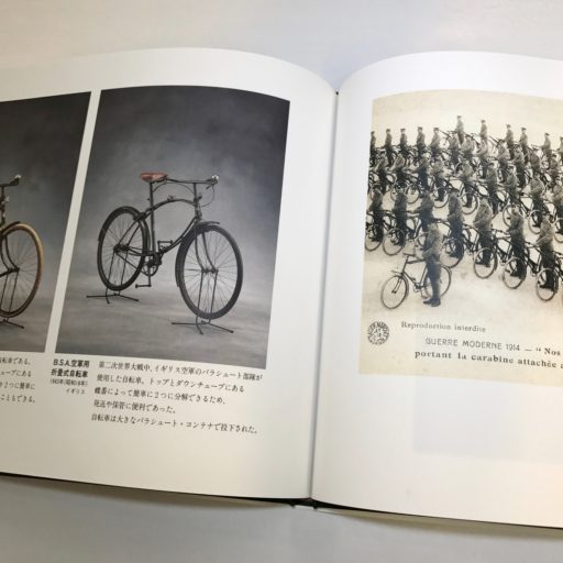 資料が少ない自転車と戦争との関係についても、イギリス空軍のパラシュート部隊が使用した折畳自転車や、フランス陸軍の自転車部隊が整列する写真が収録されている。軍用になったプジョーの折畳自転車も紹介されている。日本の銀輪部隊の自転車が収録されていないのは残念だが、自転車の多様な側面を取り上げる構成が素晴らしい。何度かページをめくるにつれて、新たな発見が生まれてくる。