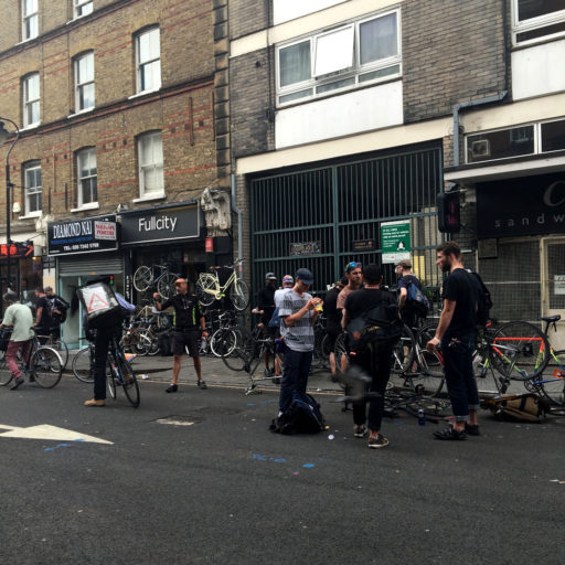 このような事態は1980年代のメッセンジャーを連想させる。インターネットが社会に浸透して書類を届ける必要性が薄れた一方で、電子決済できない飲食物を運ぶことが表舞台に躍り出たわけだ。これはヒップホップのような新しい文化を生み出せるだろうか? その一端は知人に紹介された自転車屋で感じた。彼と同じく屈強な職業自転車乗りたちは、確かにカッコイイ何かを醸し出していた。