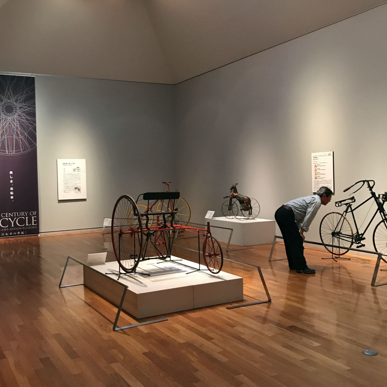 このように「自転車の世紀」展は充実した展示内容であり、刺激的な問いかけを行っている。先日訪れたヤガミ・コレクション展とも、昨年ロンドンの「Cycle Revolution」展とも異なる切り口であり、美術展としてのスタンスが興味深い。また、自転車工房の見学サイクルキャビン(三輪タクシー)の体験乗車なども企画されている。展覧会のカタログも充実しているので、来場時にはマスト・バイ。