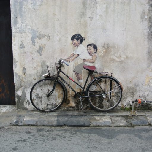 ストリート・ビューが示すように、この作品は高い評価と人気を得て、今もジョージタウンの一角に存在しているらしい。自転車は実際に乗らないことには意味がない、そんな固定観念を覆すかのように、子供たちの歓声が響き渡る。現実のペダルを漕ぐ架空の子供を通して、幼い日の記憶が蘇る。あの路地を自転車で走り、転倒して膝小僧を擦りむくだろう。そんな夢と幻がペナン島にあるようだ。