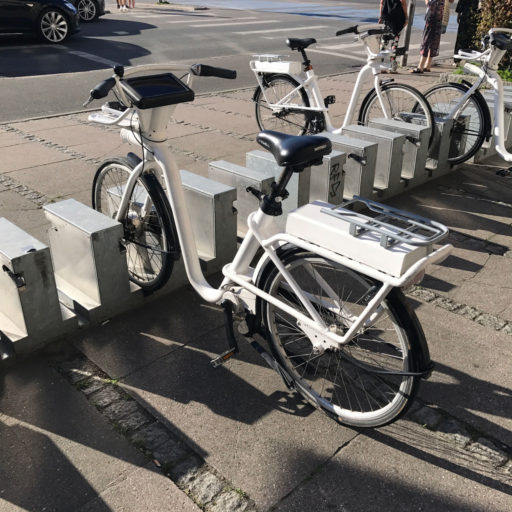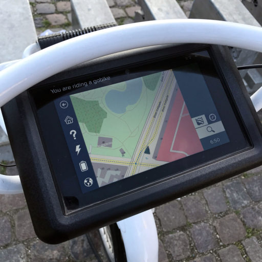 デンマークの首都コペンハーゲンのBycykelは、世界でもっとも進んだ自転車シェアリング・システムだろう。何しろ、これはタブレット付きの電動アシスト自転車なのだ。タッチ・スクリーンのタブレットはGPSとモバイル・インターネットに接続され、バッテリーはモーターを駆動し、前後のLEDライトを常時光らせる。ほぼ「全部入り」の機能は、前後に荷台を備える白く愛らしい車体に統合されている。
