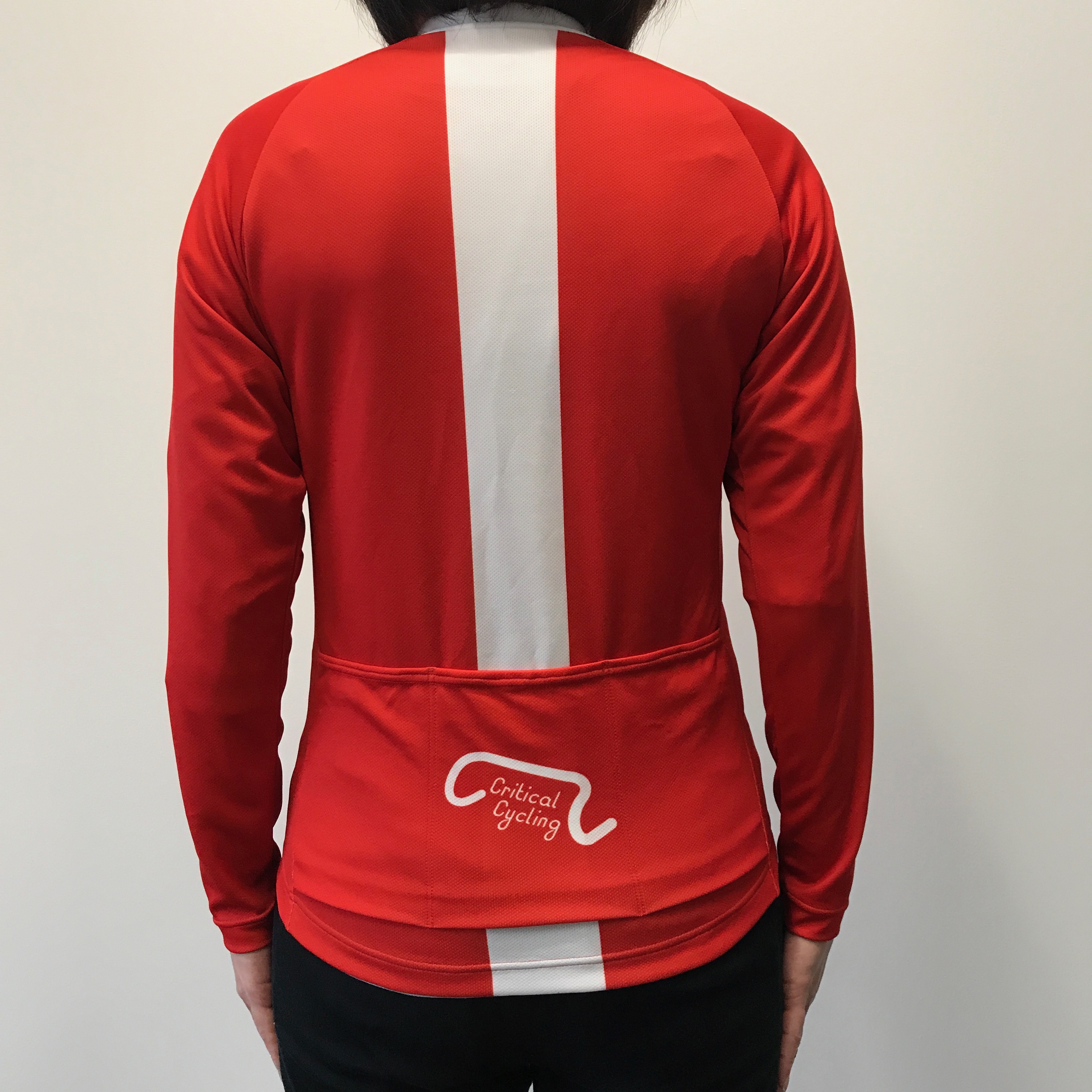 このようにしてオーダーしたのは、赤、および黒のウィンド・ベスト(ジレ)。そして赤の長袖ジャージ。いずれも、期待していた通りのシンプルさと鮮明さで、発注した誰もが気に入ったようだ。少し残念であったのは、素材と色のサンプルは小さな布切れなので、実際の仕上がりが想像しにくいことだろうか。実物大は難しいとしても、より大きなサンプルであれば雰囲気がつかみ易いと思われる。