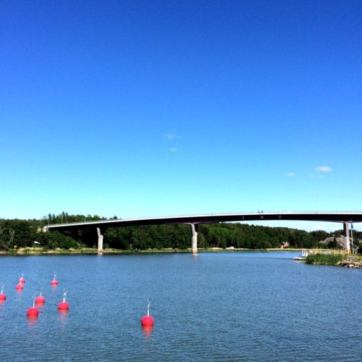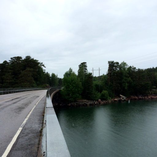 トゥルクから続くアーキペラゴは何千何万という島々から構成されている。その多くは無人島だが、数珠繋ぎのように人が住む島があり、道路が整備されている。島と島との間は、優美な橋が架けられている。だが、道路が突如として断崖で終わり、海に突っ込みそうな箇所もある。これはフェリーで海を渡る船着場だ。数メートルの小さなフェリーもあれば、何十台も自動車を載せる大型船もある。しばし海の旅。
