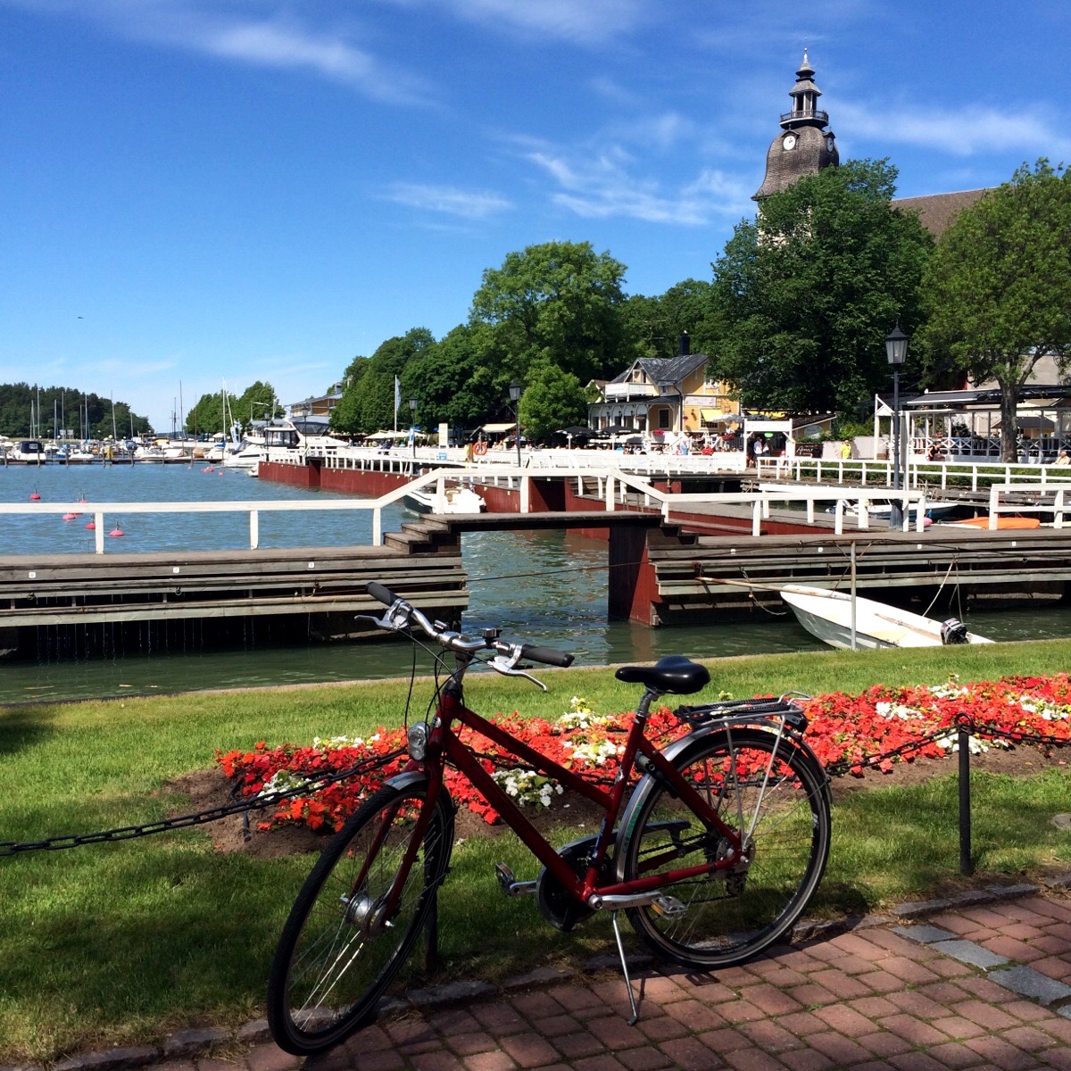 しとしととした小雨が昼過ぎまで降り続く。嬉しくはないが、レインコートがあれば雨中ライドも悪くない。森と湖の国と呼ばれる風景が、情感豊かに雨に映える。だが、晴れ間が広がれば、それこそ至福のライドとなる。青い海と空、緑の島々の中を美しい道が続き、緩やかなカーブも快い。時折現れる人家はお伽話の挿画のよう。小さな街をいくつも通り過ぎ、島から島へと渡って行く。