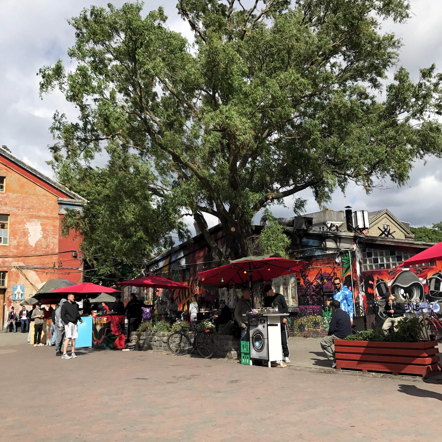 クリスチャニアの南西部にあたるダウンタウンには、土産物屋やレンスラン・バーがあり、観光客も多くて賑わっている。この一角がPusher Streetで、ライブハウスやゲイハウスもある。一方、ダウンタウンから離れた運河沿いの居住地区も興味深い。水と緑が豊かな一帯に、童話の絵本に登場するような住居が点在している。このあたりも自転車で周回できるので、生活の場を垣間見ることもお勧めしたい。