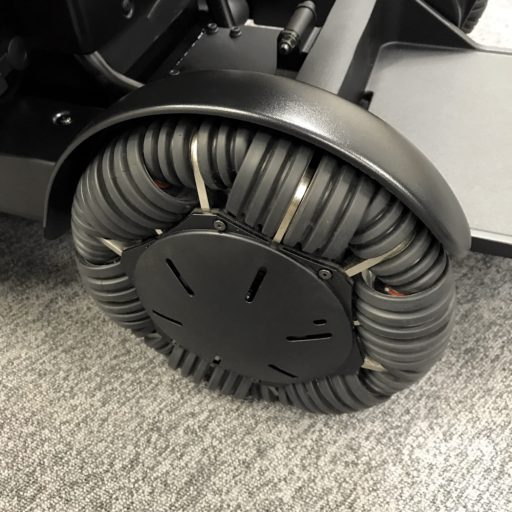 WHILLは左側のレバーで電源投入、停止とシート移動、3段階で最大速度を決める。右側の全方向スライダーは、ジョイスティックに似た操作感で、進む方向と速度を決める。このスライダーの操作感は良好で、すぐに望む方向に行けるようになる。小さな24個のタイヤで構成される前輪のおかげで小回りも効く。何よりも、進みたいだけ進む安心感があるのが素晴らしい。