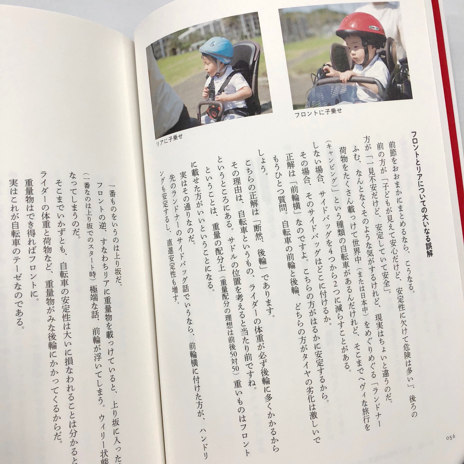 筆者は40年もの自転車歴があり、全都道府県を自転車で回ったそうだ。かなりの自転車通である著者が力説するのは電アシ子乗せママチャリの便利さ。子育ての前提条件であり、子育てを何倍にも楽しくしてくれると言う。しかも、総重量100kgを超える戦車級の自転車を楽に駆動し、すぐにブレーキが効いて耐久性もあるのだから、何とも優れた性能を備えていることになる。
