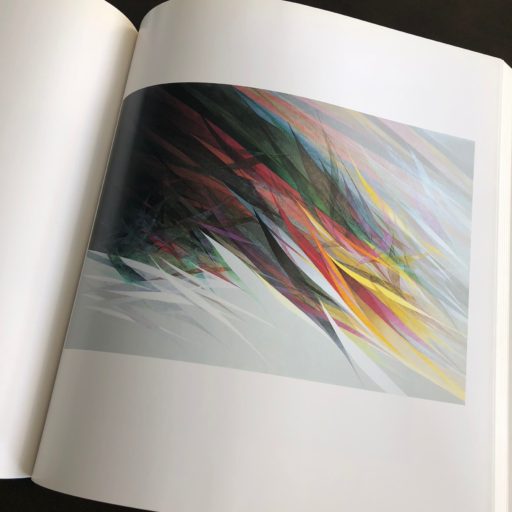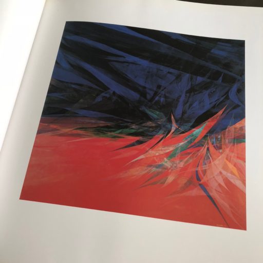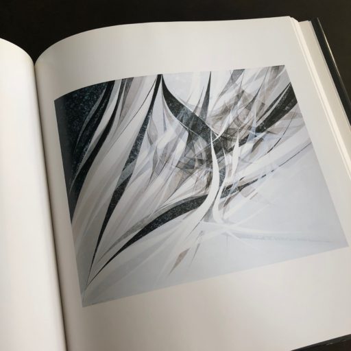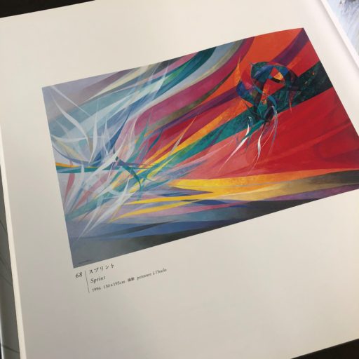 加藤の絵画は最初期こそ異なるものの、やがて曲線で構成された抽象絵画となり、この作風が終生続いたようだ。色調や複雑さの違いこそあれ、執拗なほど同じ手法が繰り返される。人力ジェネレイティブ・アートと言っても良いほどだ。画集のタイトルが示すように、これらは風を切り、風に乗る翼の羽根がモチーフだろうか。流れるような曲線と色彩はダンスにも似て、軽やかな身体と運動が伝わってくる。