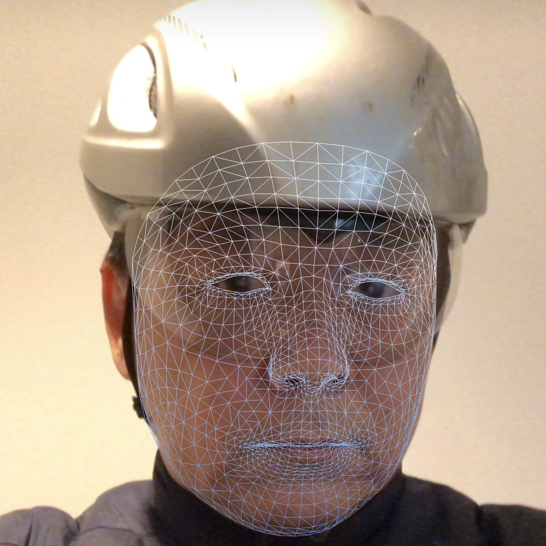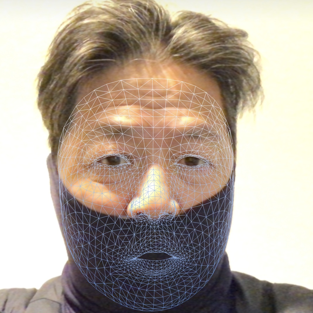 このような顔認識に用いられるTrueDepthカメラは、30,000個以上の目に見えない赤外線ドットを顔の上に投射して、顔の形状を解析する。となると、防風防寒機能を持ち、赤外線ドットを通過させる素材を開発して欲しいところ。なお、以上のスクリーン・キャプチャ画像は、AR MeasureKitのFace Data表示を使っている。このアプリで顔が認識されれば、実際のFace IDでも認識される。