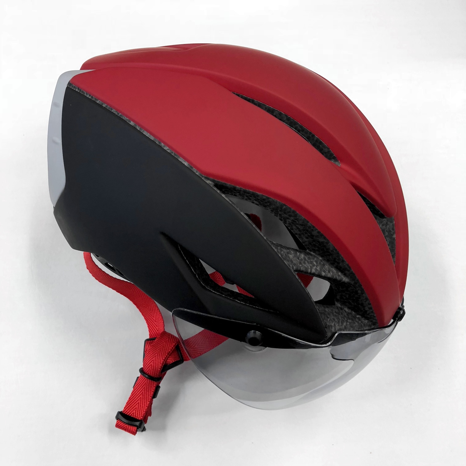 このヘルメットは、ライドでは常に愛用していたBELLのStar Pro Shield。コンパクトなエアロ型で、空力特性が極めて高い。そして、それ以上に気に入っていたのは調光シールドで、昼間でも夜間でもトンネルでも同じように走行できる。眼鏡をしない筆者にとっては、サングラスをしないで済むのが有難い。ただ、このシールドは脆弱なのか、以前にも力がかかって破損したことがあった。