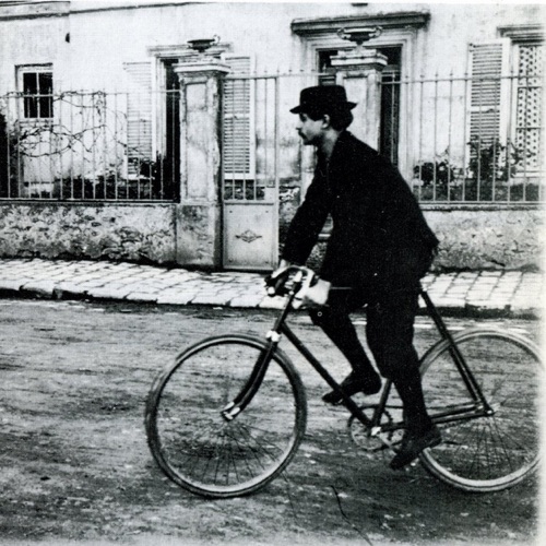 アルフレッド・ジャリ(Alfred Jarry)の出世作である戯曲「ユビュ王」に続く、もう一つの代表作「超男性(Le Surmâle)」は、1901年、つまり20世紀の幕開けに書かれた「現代小説」で、自転車が重要なモチーフとなっている。ジャリは孤高の天才であり、アブサンとピストル遊戯に浸る破滅的な生活を送り、34歳で逝去する。一方で、自転車を偏愛して始終乗り回していたと言う。