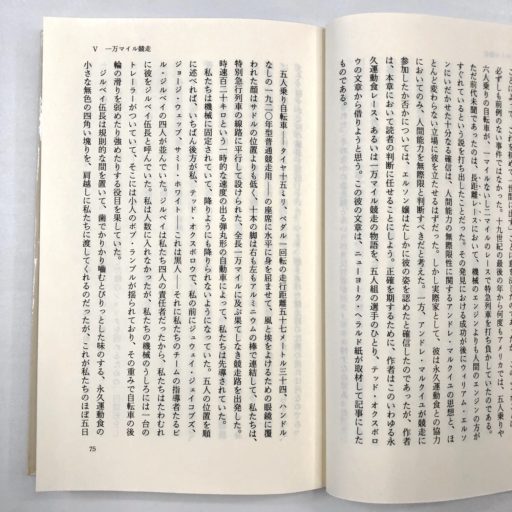 「超男性」は、さらに情愛と機械に話が進む。その前振りが自転車と機関車のレースだが、眩惑するような物語の本質は同じだ。すなわち、運動において肉体と機械を同一化し、精神を超克する超人願望だ。従って、最も機械化された運動である自転車は必然であったわけだ。イタリア未来派は自動車を礼賛したが、それよりも数年早く、ジャリは幻影のうちに人間を自転車に託した。