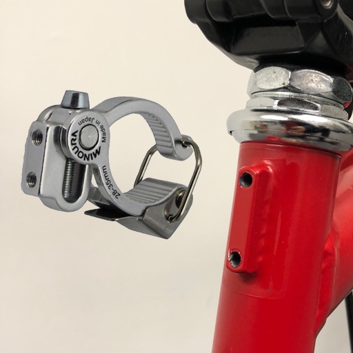 これらの部品が揃えば、キャリア・ブロックをスペースマウントにネジ留めするだけ。プラス・ドライバーと六角レンチがあれば事足りる。以前の奮闘努力は何だったのかと憤慨したくなる。しかも、マウントの取り付けや取り外しはレバーを開け閉めすれば良い。ハンドル・ポストの太さに合わせた調整も、工具なしに手軽にできる。惜しむらくはスペースマウントが銀色であること。これは黒色にして欲しい。