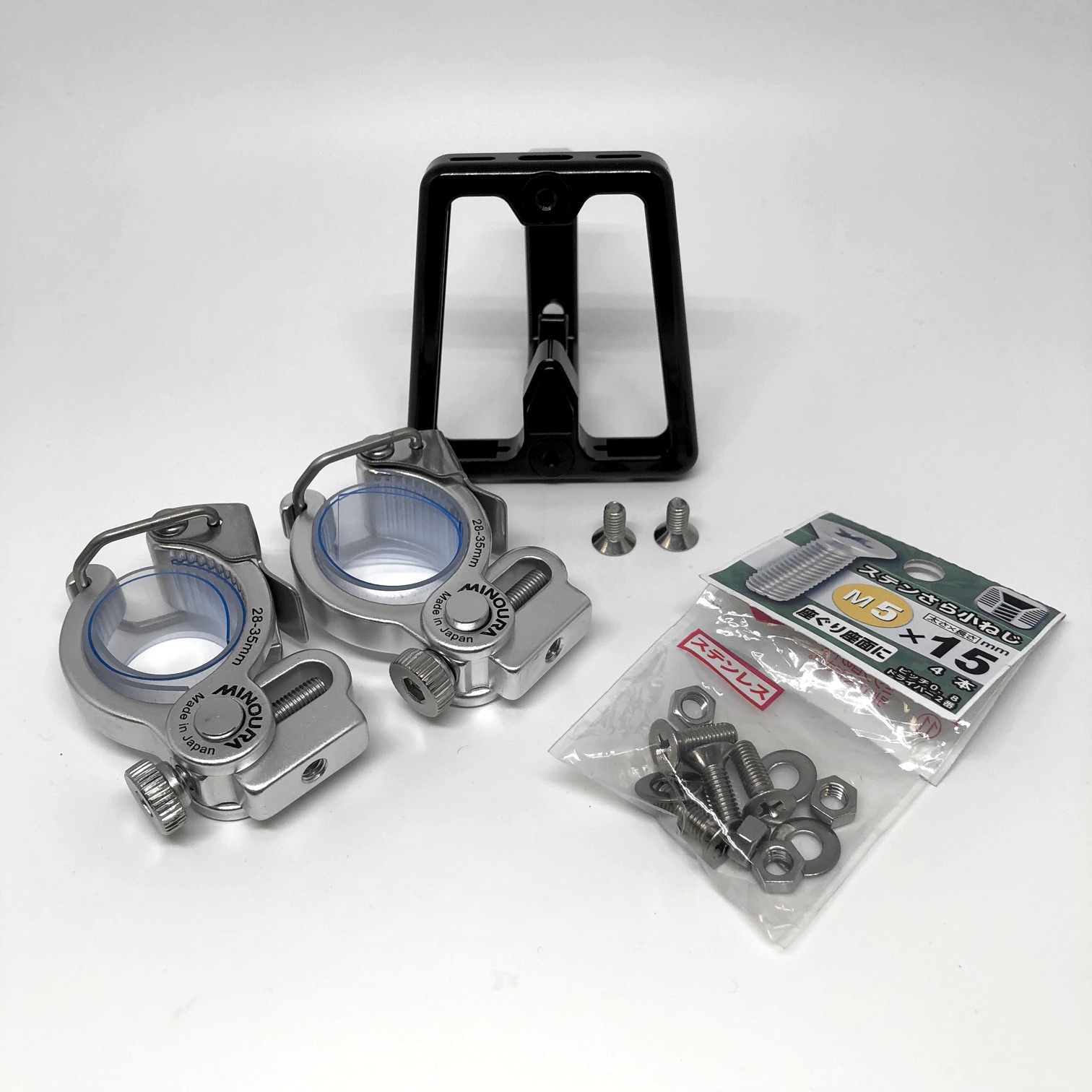 【追記】黒色のマウントが欲しいとしていたが、実はLWクランプという名称で黒色の同等製品が発売されていた。ネジのサイズもM5と同じで、直径22〜29mmと28〜35mmの2種類の製品がある。ハンドル・ポストに取り付けるには六角レンチが必要になるが、スペースマウントのようなレバーがないのでスッキリとした外観になる。これで完璧の領域にまた一歩近づいた。(2018.04.05)