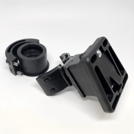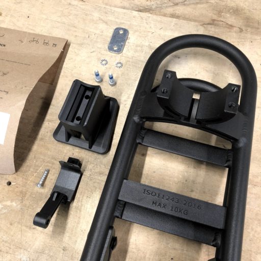 一方、XiaomiのQiCycle用のフロント・ラックを取り寄せた時に別のアイディアが浮かんだ。この機構を使えば、どの自転車にも取り付けたり取り外したりできるユニバーサルなフロント・キャリア・システムができるのではないか。このラックは2つの半円型金具でハンドル・ポストを挟み込んで固定するので、汎用性が高い。内側にはプラスチックの緩衝材があるので、傷を付けることもなさそうだ。