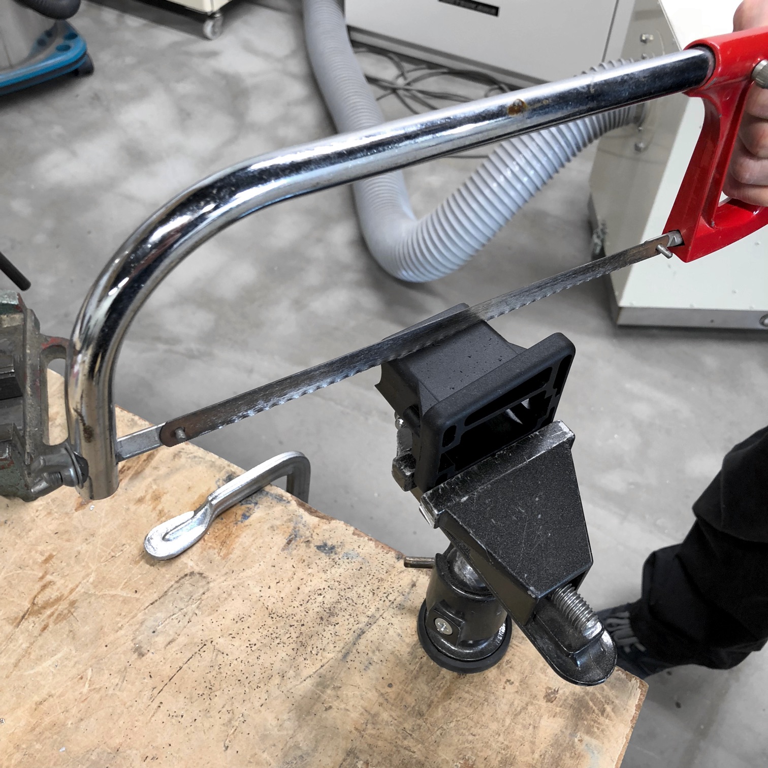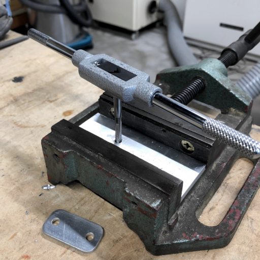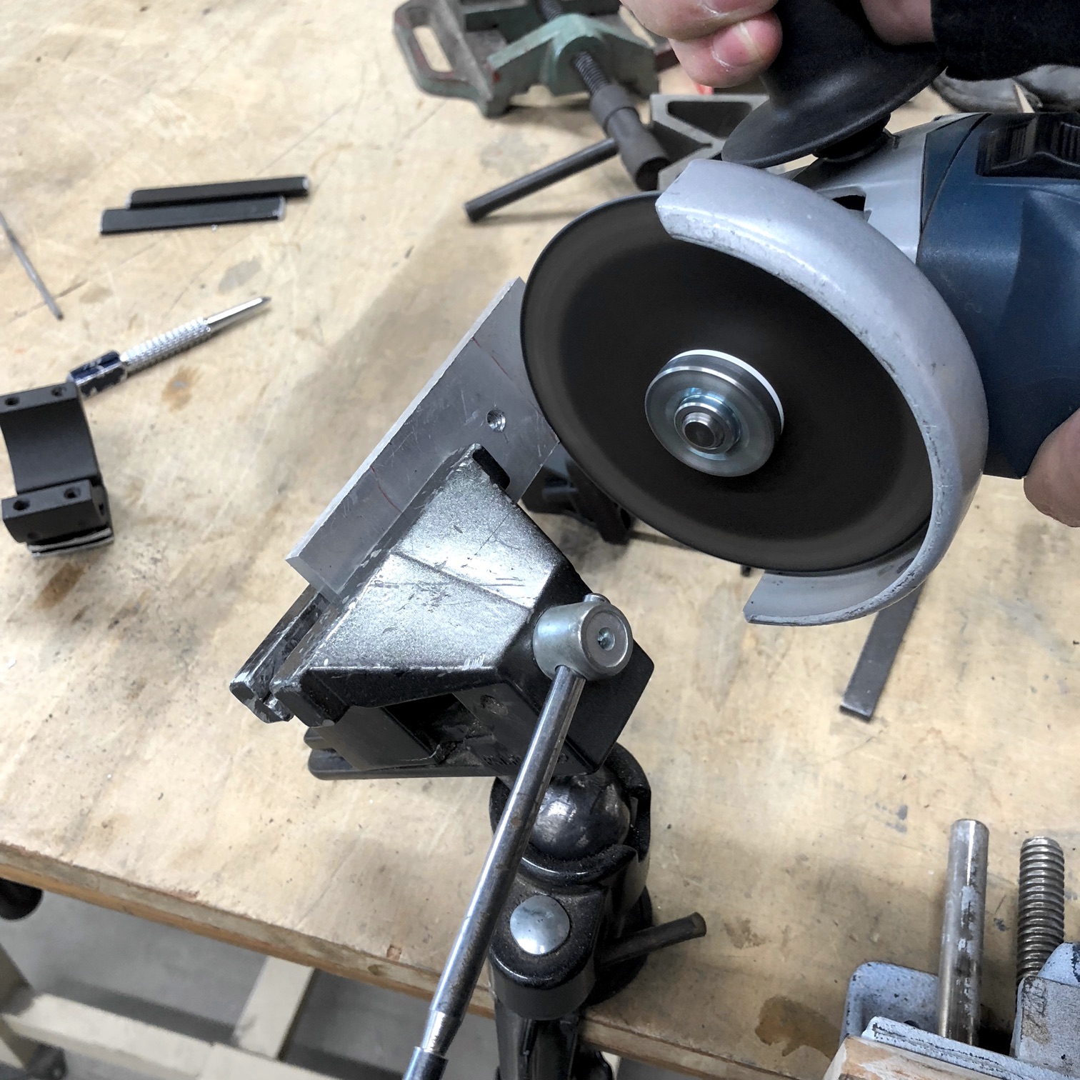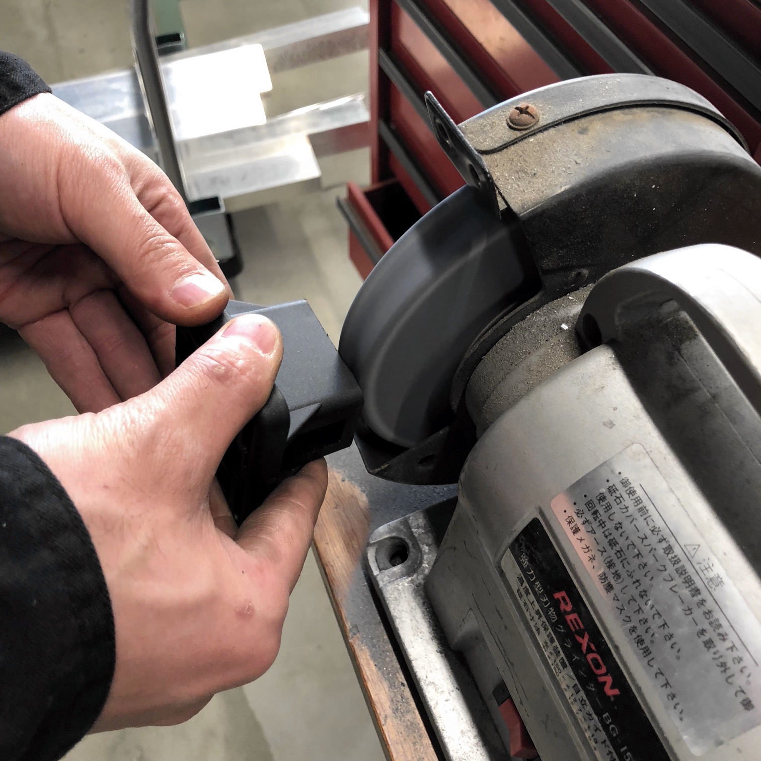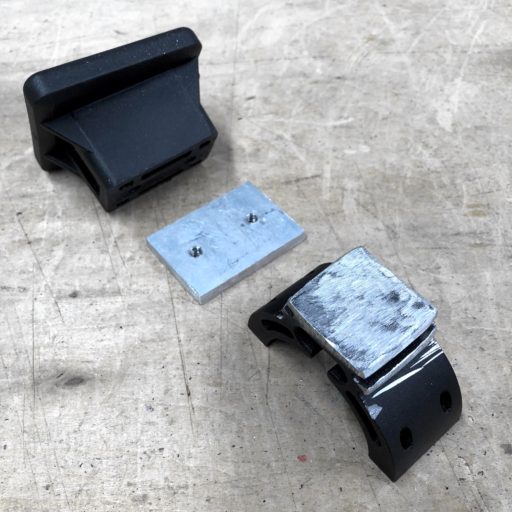 そこでラックの取り付け部を切り出す。この部分に余裕があれば直接ネジ穴を開けることができるが、僅かに縦幅が足りない。そこで、ネジ穴を開けた金属片を溶接する。この金属片は幅広にして、突起部は作らない。その代わりにプラスチックのブロックを削って形状を合わせる。この辺りは実験精神を発揮と言えば聞こえが良いが、実際には行き当たりバッタリのご都合主義だったのが実情だ。