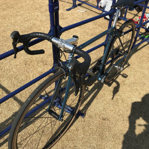 乗ってみた感想は、スチール製のフレームだからか、カーボンのような軽さはなかったががっちりしていて、旅ができそうな感覚を味あわせてくれた。前後にフェンダーがついていて、ステアリングが少し重たい感じもした。
