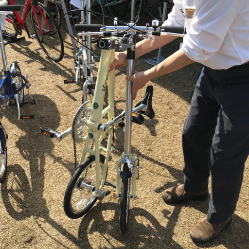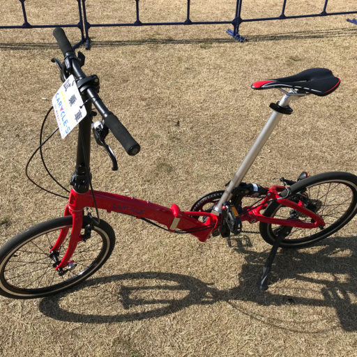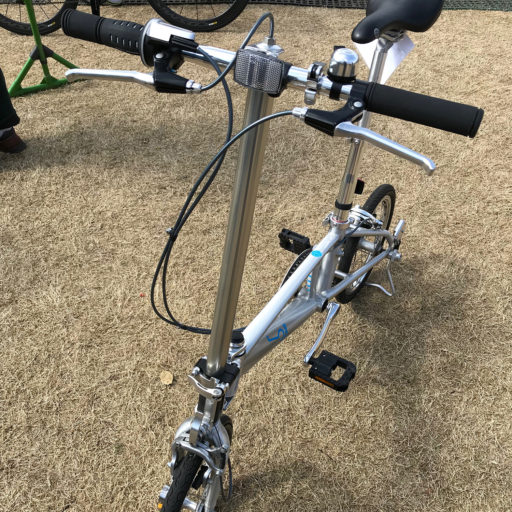 試乗してみると確かに早く、リアサスペンションがあって滑らかな感覚で走れた。折りたたむと、あちこちが出て空間の無駄になることがなく、市販の旅行用のキャリアにも入るという。5Links社の自転車は折りたたんで、自転車自体がキャリアのようになるのに対し、CARACLE-Sは畳んだ状態をもっと小さくすることで、他のカバンに入ることを意識していることが違っている。