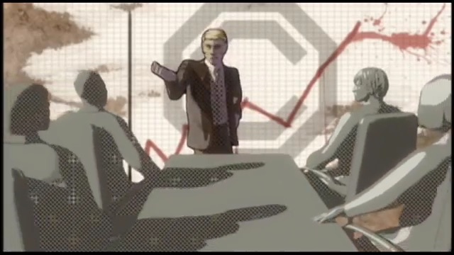一方、Cマークの方向に進んだ金髪横分け野郎は、勉強に勤しんでビジネスマンになる。中古品販売から始めて、雑誌を作り、エンジンを設計する。抗生物質を作り、コンピュータも開発する。貪欲に商売を広げ、利益を上げ、陰謀を巡らし、権力の一角に食い込んでいく。その象徴は巨大なタワー型のビルだ。そして、マイクを握り演説を始める。ビジネスに飽き足らず、彼は大統領に昇り詰める。