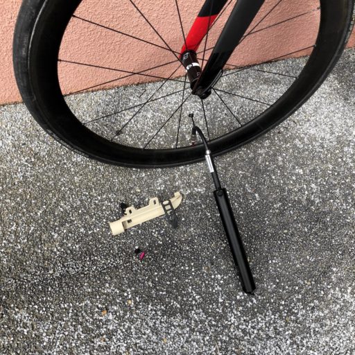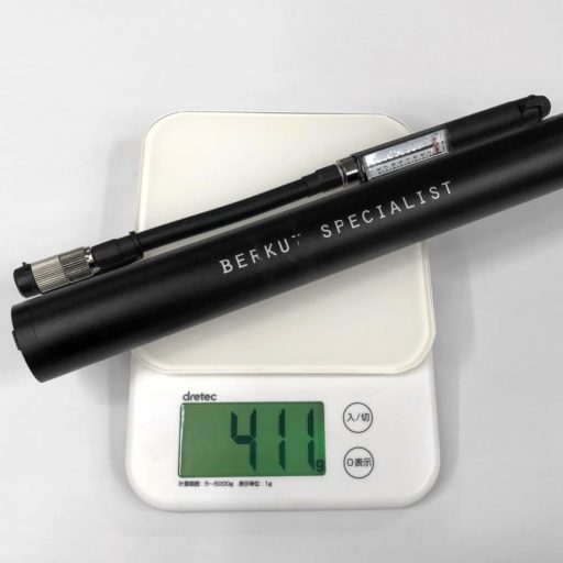 この電動ポンプの重量は411g、専用ホルダーを付ければ466g。随分と重く感じたが、以前の電動ポンプ420gと同程度だった。ただ、いずれも400g超えともなれば、携帯する気になれない。1回の充電で自転車用タイヤを8回も充填できるのは、なんともオーバースペックだ。容量を落として、できるだけ小さく軽くして欲しい。ただ、据置での使用に限れば、フロアポンプより遥かに取り回しが楽だ。