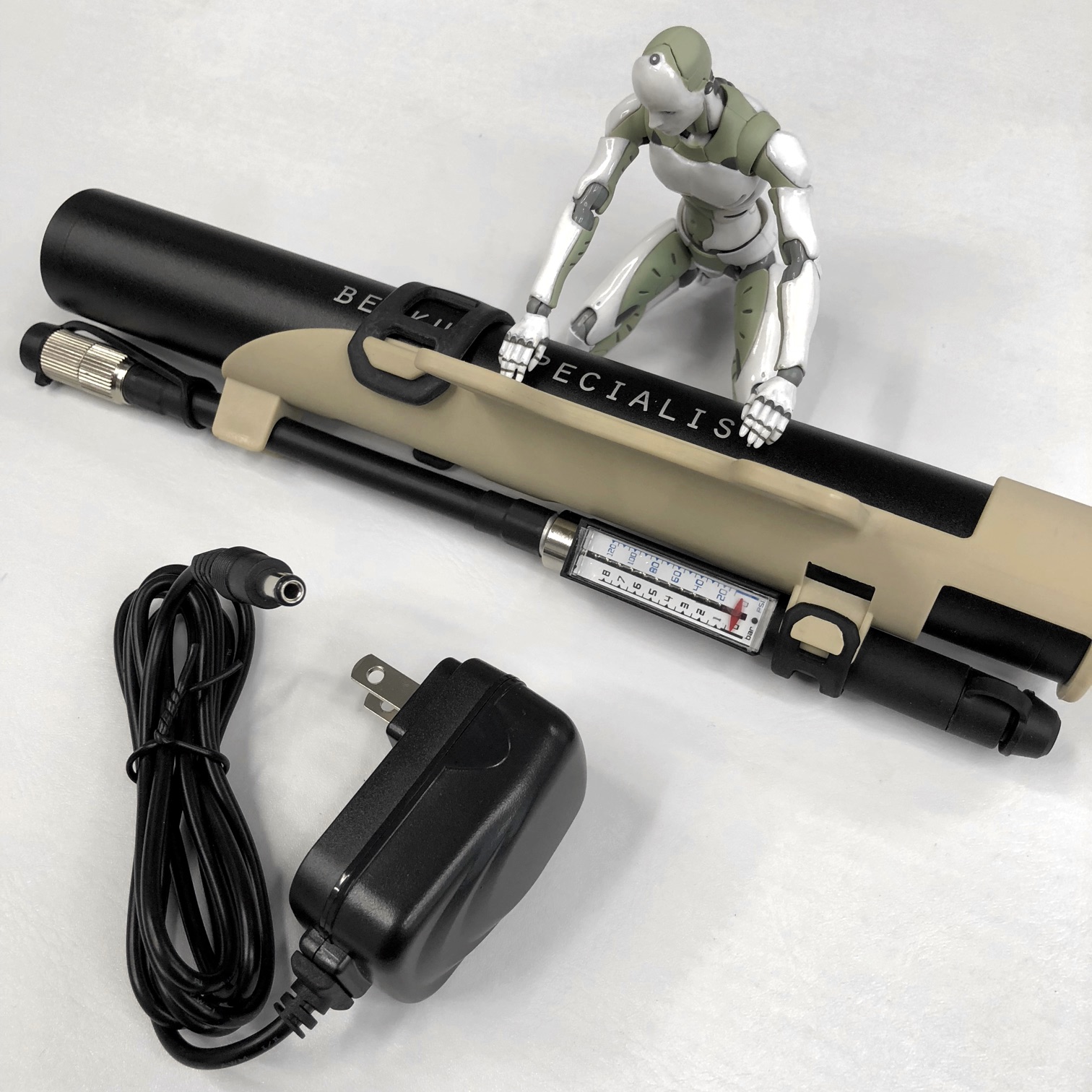 ところが、最近になってクラウドファンディングで支援したBERKUT SPECIALISTが届いた。120psiまで対応するエア・コンプレッサーだ。ロシアから上陸!と謳うだけあって、黒い金属製の棍棒は、まるで武器のような印象を与える。手に持てばずっしりと重く、冷ややかな感触に息をのむ。これで頭を殴られた日には、即刻昇天するに違いない。レトロなアナログ式圧力計が緊迫感に拍車をかける。