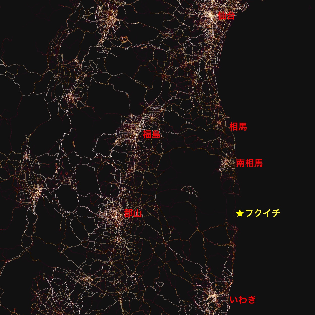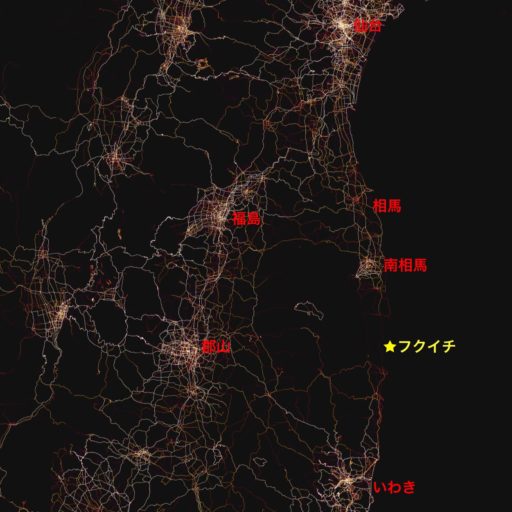 ところで、ツール・ド・フクイチは未だ実現される見込みがない。Stravaのグローバル・ヒートマップを見ても、フクイチ周辺は魂が抜けたように暗黒だ。近くを通る国道6号線は自動車に限って全線通行できるが、「窓を閉めてエアコンは内気循環にするよう呼びかけられている」と言う。周囲の粉塵が車内に入り込むことを防ぐ処置だろう。従って、防護壁がない自転車やオートバイは通行できない。