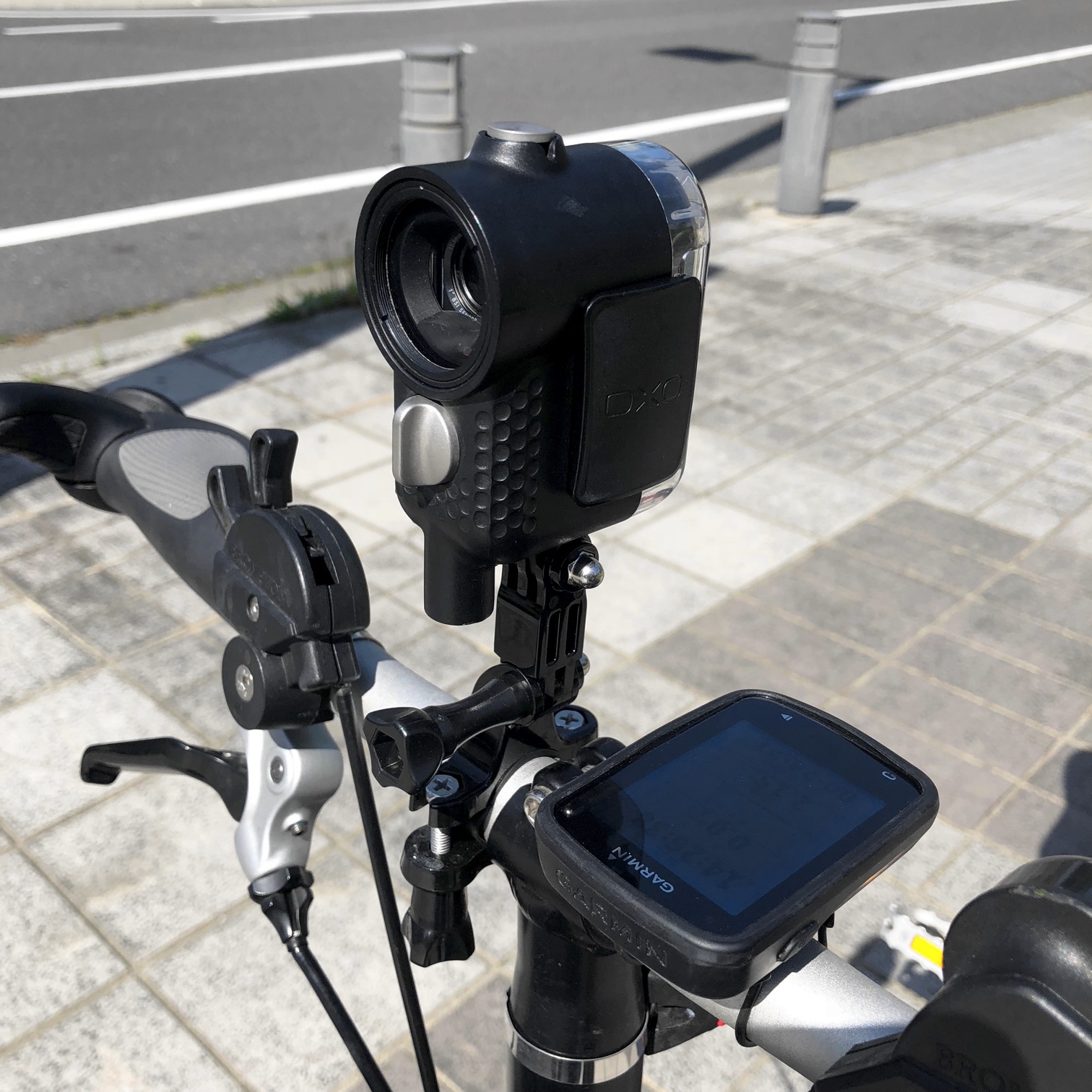DxO Oneの本体には取付機構がないので、Outdoor Shellに入れてマウンタに固定した。それはともかく、手ブレ補正が備わっていないDxO Oneの映像は激しくブレている。路面からの振動の激しさが如実に分かる結果となった。DxO Oneは1インチ・センサーによる高品質の写真撮影カメラだ。だから、アクション・カメラのような振動の押さえ込みは、期待するほうが酷と言うべきだろう。
