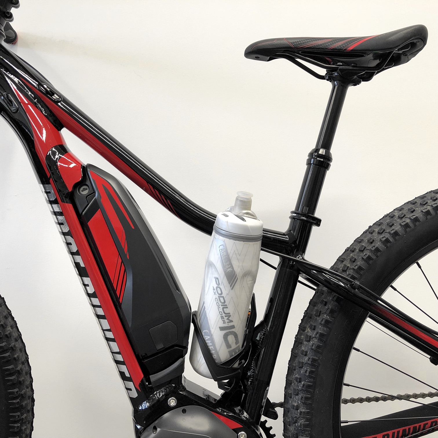 逆もまた真なりだが、ロード・バイクからするとマウンテン・バイクは奇妙な自転車で、不便なことが多い。その一例は下に湾曲したトップ・チューブで、ドリンク・ボトルの空間に乏しい。ミヤタのRidge Runnerでは、シート・チューブにボトル・ケージ穴があるものの、標準的なボトルは入らない。かなり小さい500ml程度のボトルなら入るが、下方になるので手を伸ばして取り出すのに苦労する。