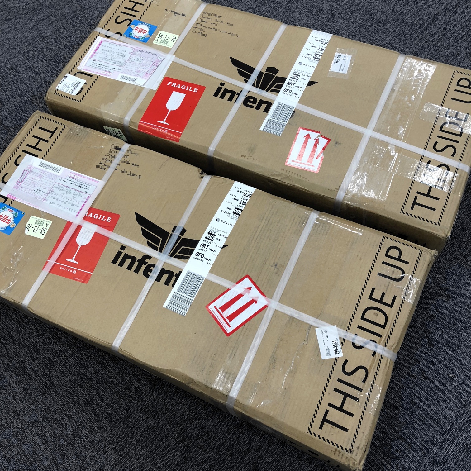 ただし、Infentoはヨーロッパと北米にしか発送していない。日本への発送を打診したが、丁重に断られた。そこで、アメリカの知人宅へ発送し、そこから日本に転送することを画策。ところが、知人宅に届いた製品は50kgもある大荷物で、日本への発送料金は10万円以上。XYZ Cargoの悪夢が蘇る。ただ、偶然にも一時帰国していた知人が、飛行機の預け入れ荷物として運搬してくれることになった。感謝。