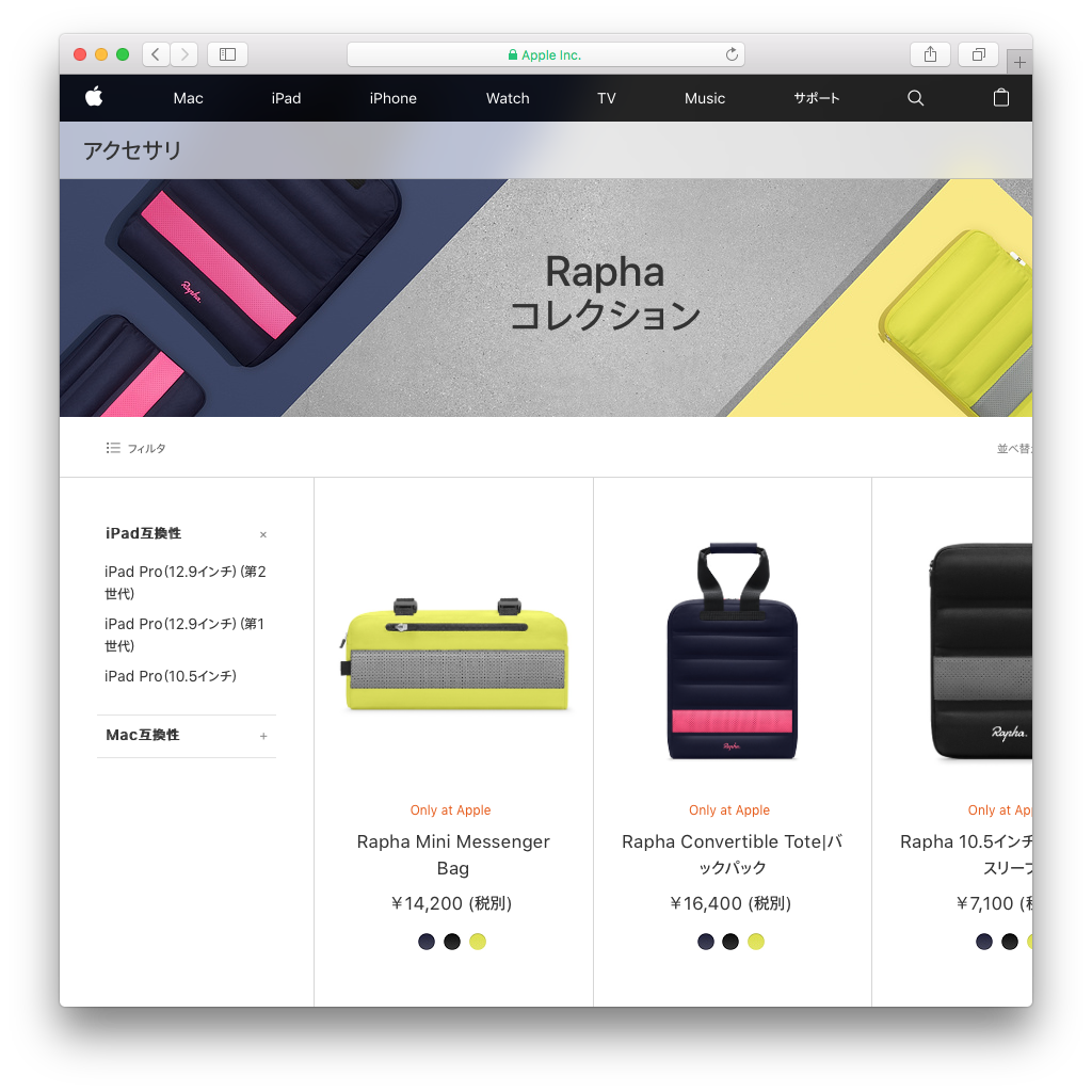 【追記】いつの間にか、Apple StoreからRaphaが消え、これらの製品はRaphaサイトでRapha for Appleコレクションとして販売されている。また、制作の舞台裏として解説やビデオも公開されている。(2018.10.12)