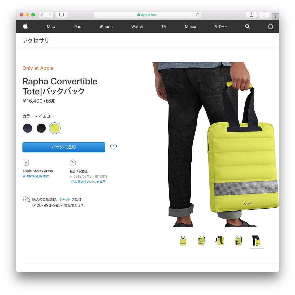 興味深いことに、Apple Storeのレギュレーションゆえに、大きさとともに重量が明記されている。軽量化が重視されるサイクリング製品でありながら、Raphaサイトでは重量は記載されなかったことを思い出そう。その理由は明らかではないが、郷に入れば郷に従う、ということだろうか。AppleのこだわりとRaphaのごだわり、そのせめぎ合いが面白い。