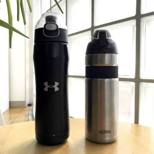 夏のライドでは大量に汗をかくので、水分補給は絶対に必要だ。冷たい水は、暑さを和らげる効果もある。そのためのドリンク・ボトルは魔法瓶型に限る。筆者はUnder Amourサーモスのボトルを使用している。これに角氷を詰め入れてから水を注ぐ。水を飲み干せば、水を注ぎ足す。保冷効果が高いので、氷の量は減るものの、最後まで氷が残って冷たい水を飲むことができる。