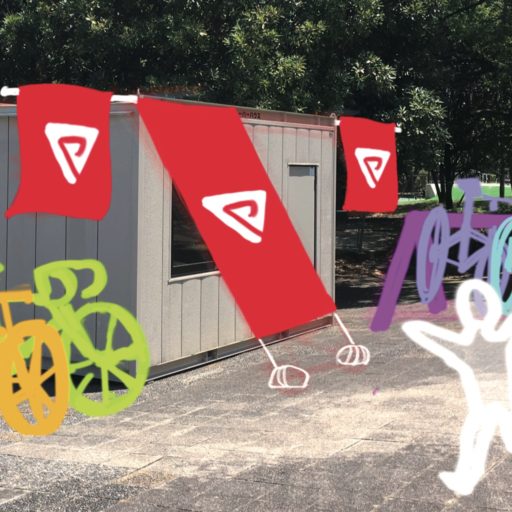 シヨン:ユニット・ハウスが運ばれてきて、地面に置かれて行くのを横から見守っていましたが、地面が思ったより斜めっていたので心配でしたが、業者の方の職人技でちゃんと設置されました。公園の入り口前にあることで、自然に通行人の視野に入ることもいいと感じました。また、ちょうどステーションの向こう側にトイレがあり、水の利用にも便利そうでした。