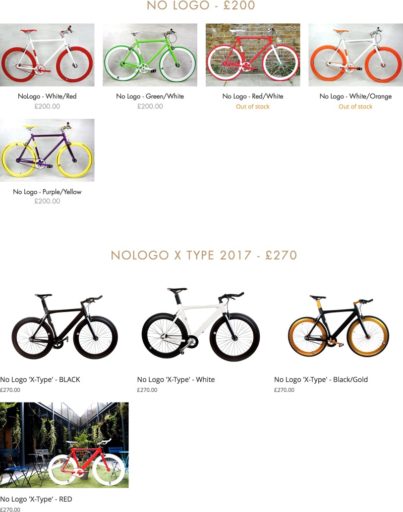 そのようなわけで、直接話しを聞くことができなかった。後で調べると、NO LOGO BIKES はロンドンのイースト・エンドにある自転車メーカーで、シングル・スピード専業と言う。ロゴもなければ、変速機もないシンプル路線。モノトーンもあれば、ビビッドでカラフルな色使いもある。価格は£200〜270(約30,000〜40,000円)なのでリーズナブル。ロンドンでデザインし、中国で生産しているらしい。